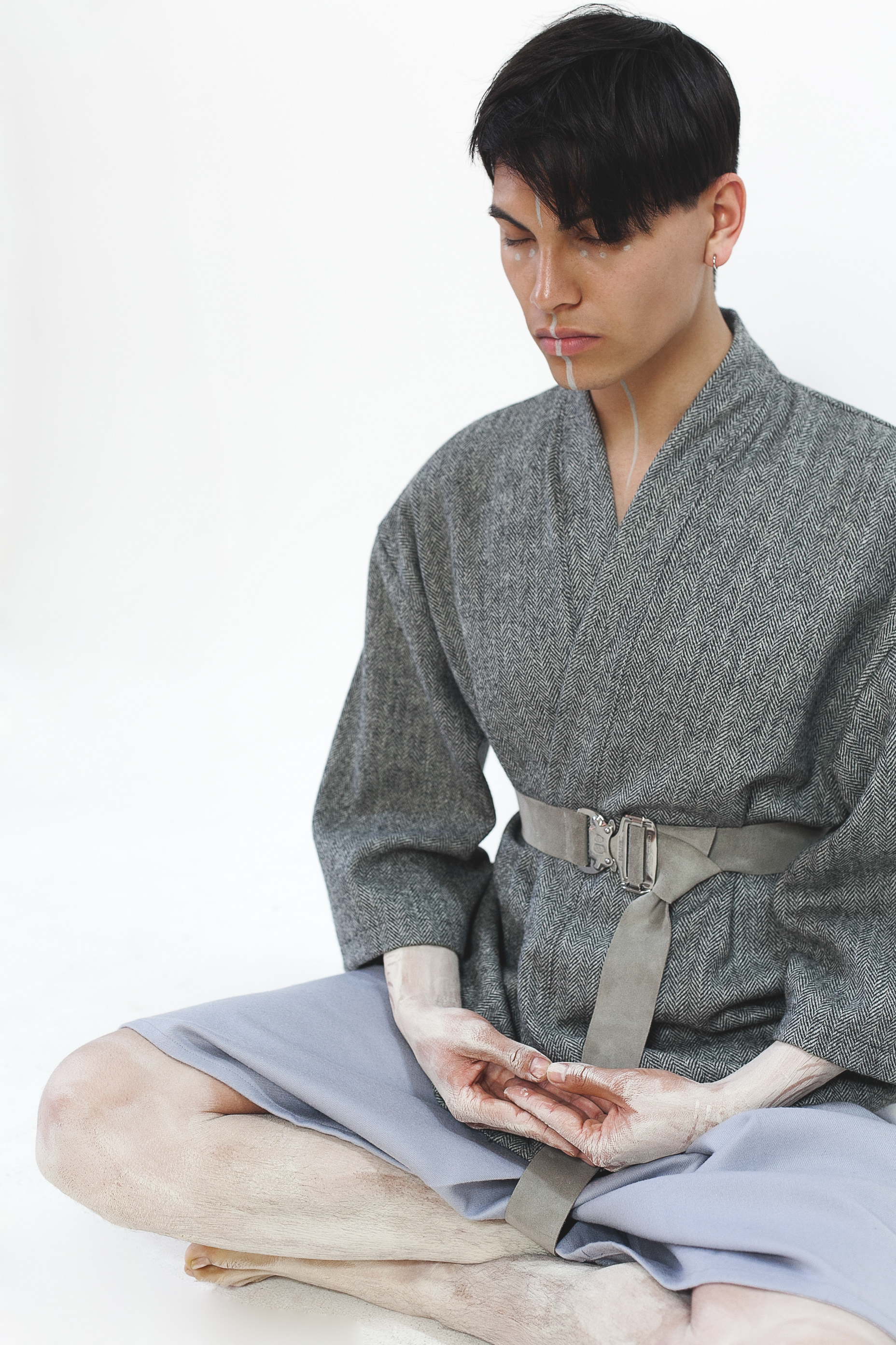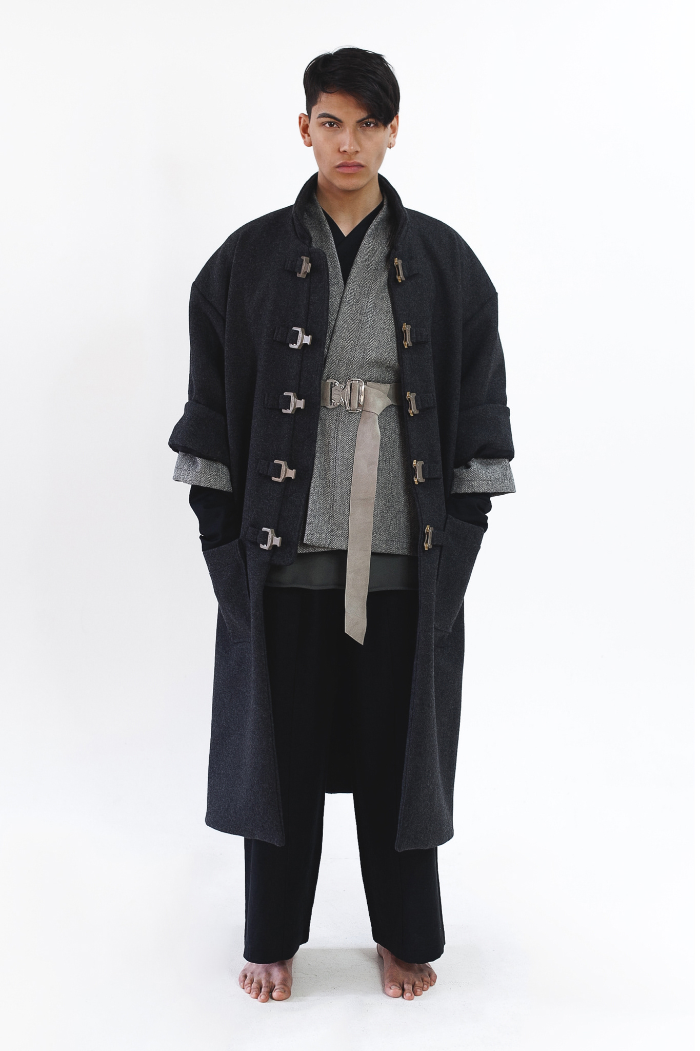 Each piece was constructed from pure natural fabrics, chosen for their integrity, longevity and deep connection to the history of dress. The silhouettes drew inspiration from Japanese Ukai fishermen and the graceful forms of Buddhist monastic robes. The result was a body of work that felt both timeless and forward-looking.